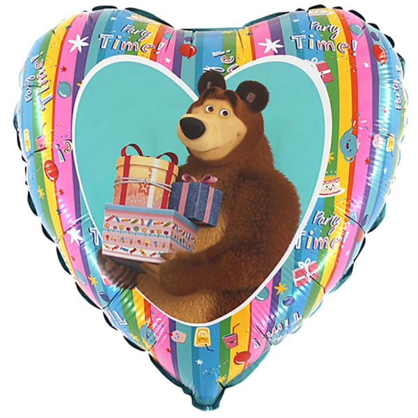 G Шар (18''/46 см) Сердце, Маша и Медведь, Радуга, 1 шт.